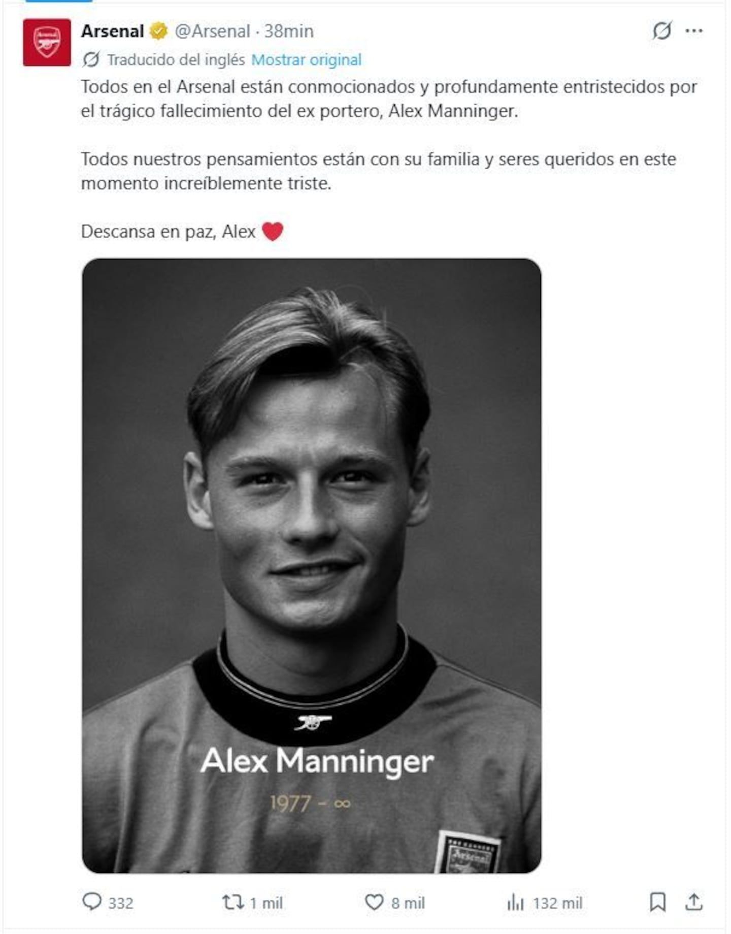 Desde el Arsenal manifestaron su tristeza por la pérdida y enviaron condolencias a su familia y seres queridos, destacando su paso por el club.